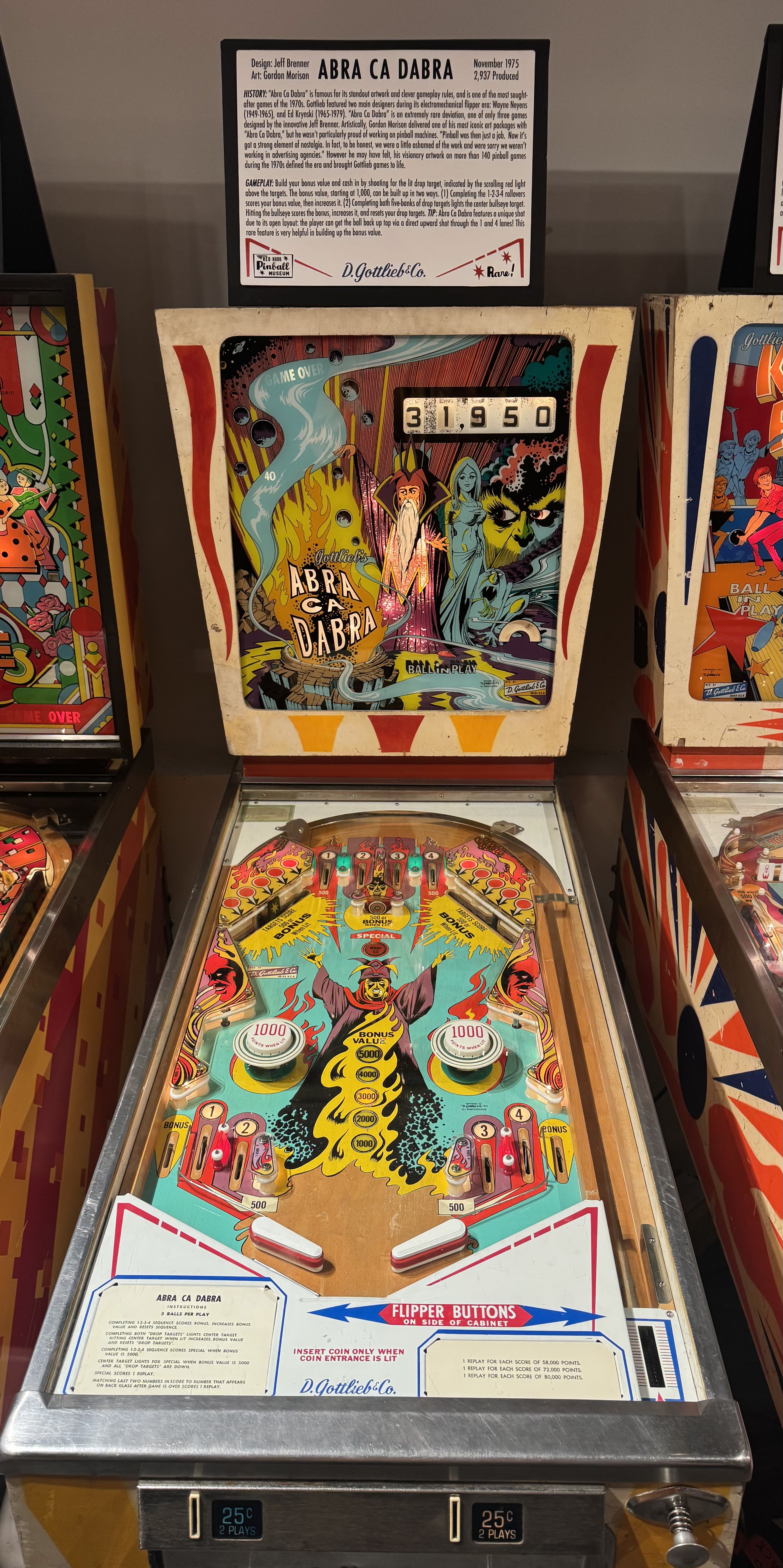 Also notable was that this was the first game to feature an end-of-ball bonus, now standard on all machines.